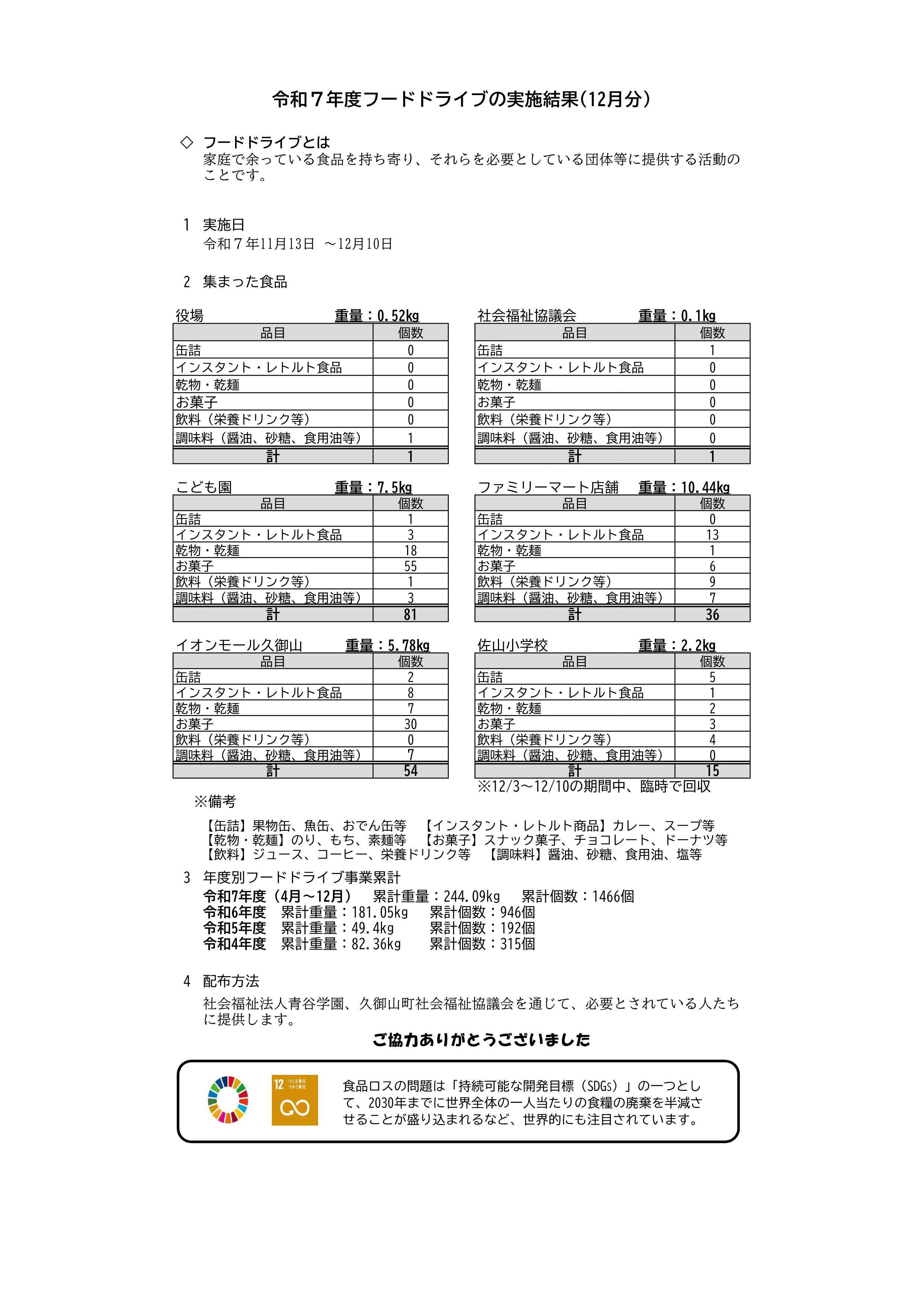 ※回収した食品には、缶詰・インスタント食品・乾物・お菓子・飲料・調味料が含まれています。