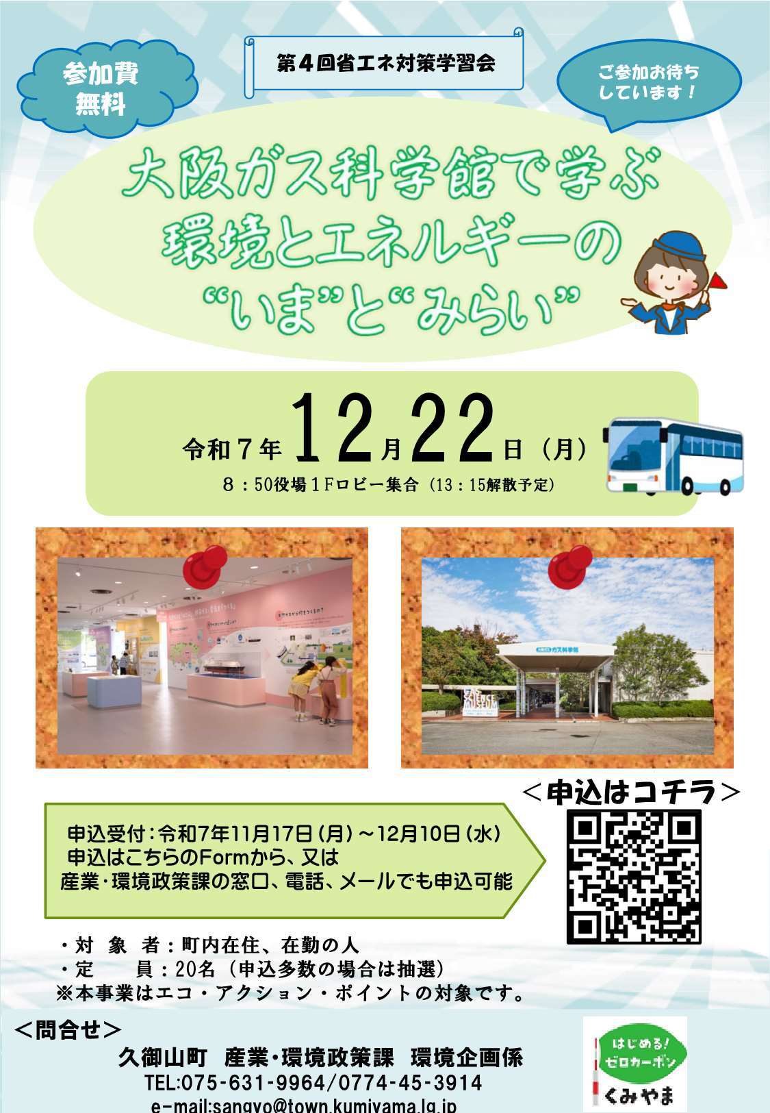 ※メールの場合は、題名に「大阪ガス科学館見学」と記載し、参加者の住所・氏名・連絡先をご記載ください。