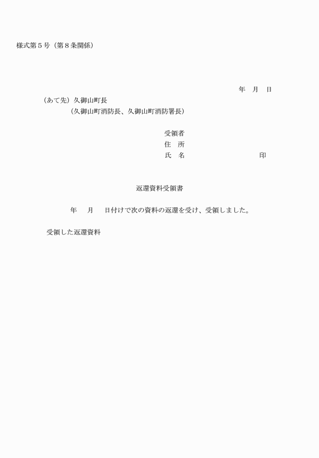 第7条 町長、消防長又は署長は、立入検査の対象物に係る構造等の実態把握又は法令違反の事実の把握に必要があると認めるときは、資料提出命令書(様式第1号)により関係者に資料の提出を命ずることができる。